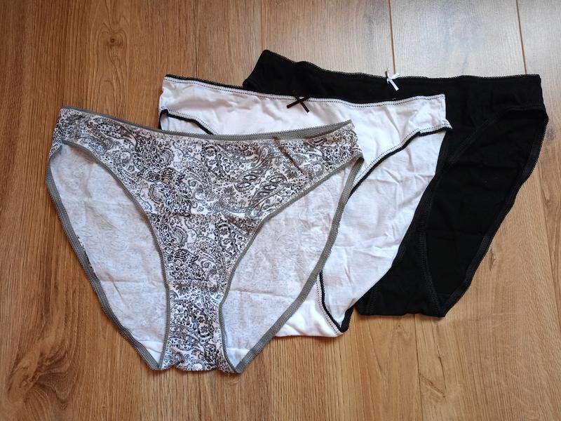 Трусики Secret Primark р 38/40 в наборе 3 шт 100% котон замеры в спокойном состоянии пот 37 см глубина спереди 17 см, сзади 24 см тянутся хорошо