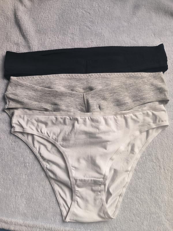 набор новых трусиков primark (ток, отсутствуют картонные бирки) белые трусики обычной формы слипы, серые и черные - тоже слипы, сзади как привычное, спереди чуточку заниженные до середины, выглядят очень интересно, удобные размер S, резинка 33-34, высота 23 ( серые и черные спереди высота 20 в самой низкой точке) ціна за набір в мействе есть также другие наборы, различные трусики по форме, цветам и ценам