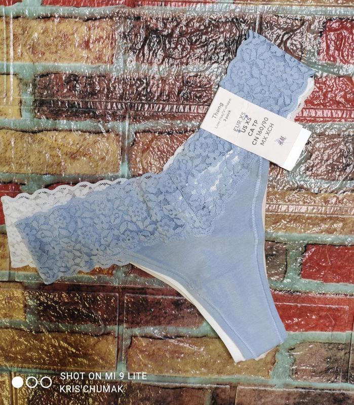 В упаковке производителя всеми вшитыми ярлыками трусики танга бавовна + мереживо состав хлопок,полиамид, эластан / ластовица 100% хлопок Цвет:голубой,белый,беж Размер евро ХS ВИМІРИ (добре тягнуться) Талия-27(тянется до 42) Глубина-17