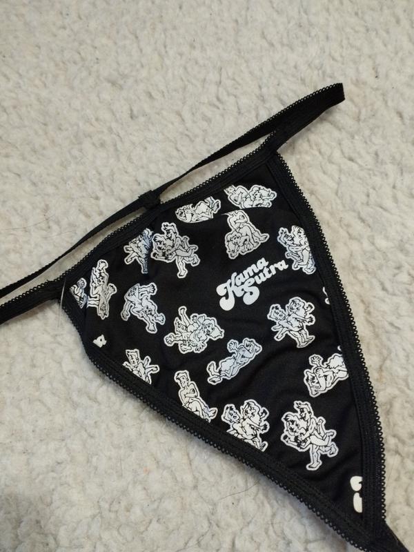 Новые женские трусики стринги с прикольным принтом размер Л замеры на фото