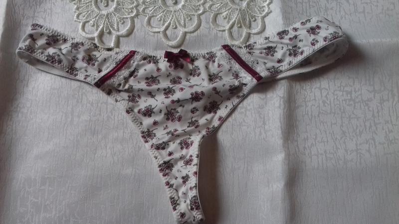 Трусики стрінги фірмові в ідеальному стані.Розмір вказаний 44/46..йдуть на хл.див заміри:ширина 37-38;висота спереді21,5