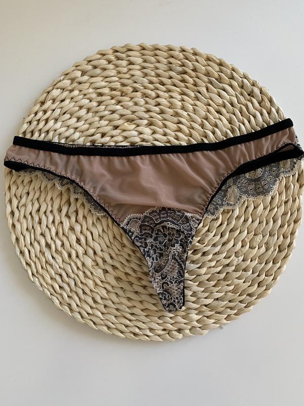 Стринги из сеточки телесного цвета, кружево в тон с чёрным, шикарный рюш на попе. Верх подобрать очень легко