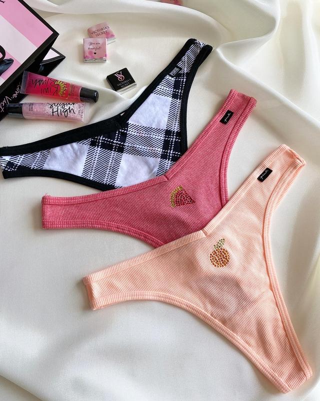 Набор из 3х трусиков victoria’s secret pink оригинал рубчик стринги виктория сикрет