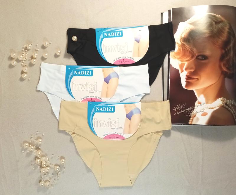 Безшовні трусики, посадка середня. Розмір згідно таблиці. Матеріал - мікрофібра. Склад: 85% поліамід, 15% еластан. Колір: бежевий, чорний, білий. Розмір: L (р. 46), XL (р. 48), 2XL (р. 50).