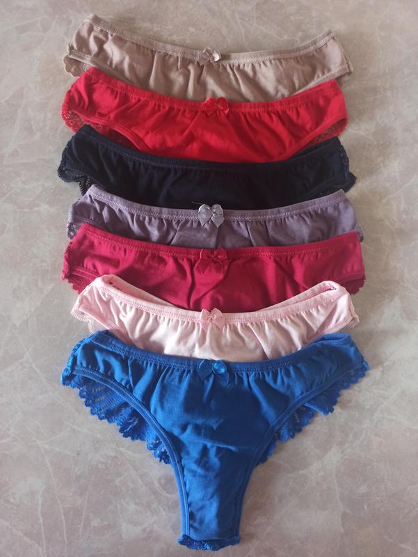 набір трусиків із 7 шт, Туреччина. якість бездоганна🔥 садяться дуже красиво💗 приємні на дотик 90% бавовна 10% еластан розмір один М (s) висота 17 см резинка 25 см ширина 28 см можно одного або на вибір скомпоновати кольори🎨.