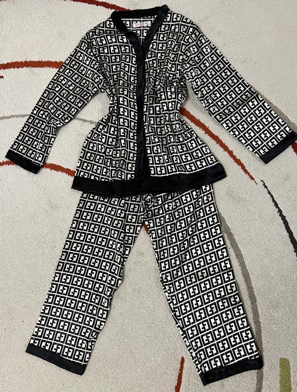 Розмір М Штучний шовк Сорочка Довжина 65 см Довжина рукава від плеча 51 см Ширина плечей 42 см Обхват грудей 50 см Штани Довжина внутрішній шов 64 см Довжина штанів 92 см