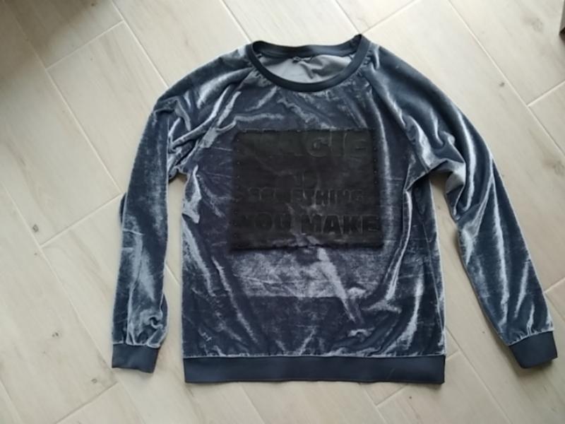 Крута велюрова кофта Цвет - красивый серый, однотонный( 6 фото) велюр состояние- идеальное Размер наш:42-44 Надпис: "Magic is something you make" ( все ,що ти робиш - дивовижно) ПОГ -50 см рукав - реглан низ полуобхват -49 см + тянется длина изделия -65 см без дефектов и повреждений оплата на карту Приватбанку отправка посылок НП и Укр-почтой возврат нет