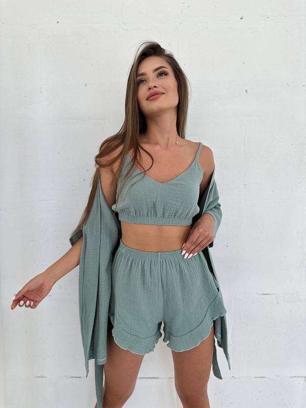 шорты высокой посадки халатик 75 см топ на регулюючих брительках