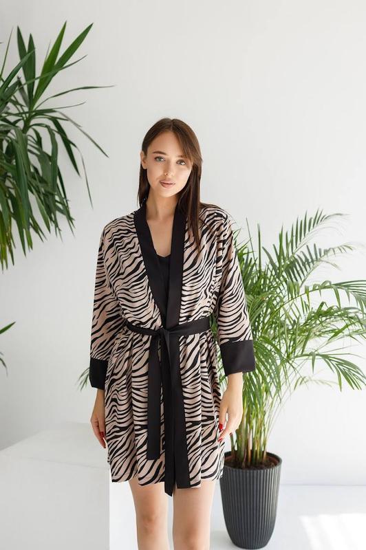 Комплект для дому піжама 3в1 софт халат, майка і штани принт зебра