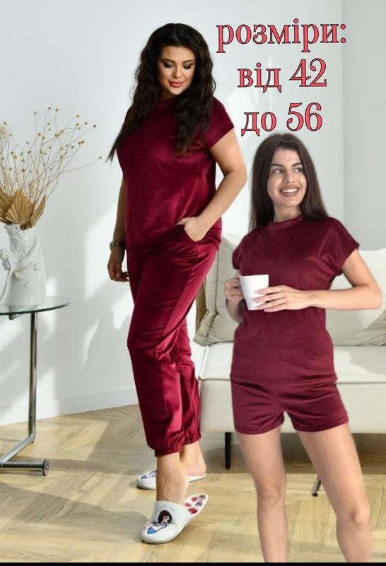 Комплект: штани+шорти+футболка ♥️42-56р, пижама велюровая, домашний костюм женский