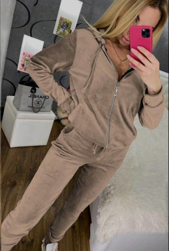 Велюровый костюм на замке трендовый костюм прогулочный костюм на замке бежевый костюм расп...