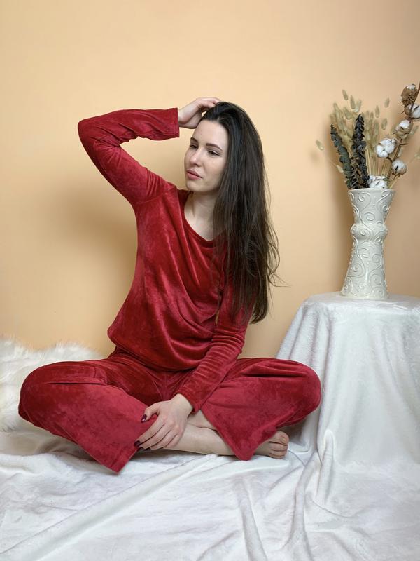 Домашний велюровый костюм 💋 📍Размер: S/M (42/44) Красивый, женственный и такой мягкий на ощупь Костюм выполнен из легкой приятной к телу велюровой ткани на хлопковой основе. Кофта с длинным рукавом без манжета. Брюки на резинке средней посадки прямого кроя