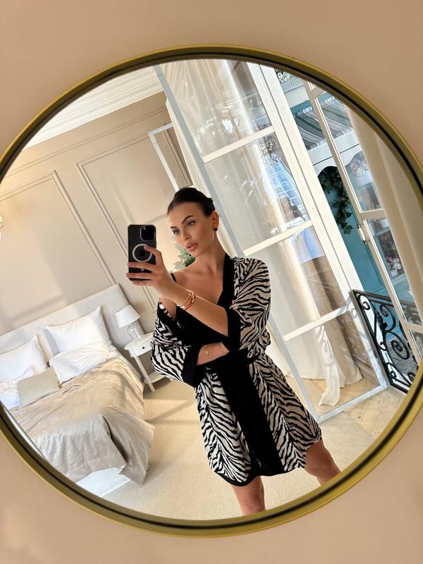 Шикарный набор в анималистичный принт. В набор входит: сатиновый халат и шелковая рубашка. Рубашка на регулируемых брелках, длина мини. Халат на запах, который завязывается поясом. Модель: 162/24 Размеры: XS-S, M-L, XL-XXL Тканина: шовк і Сатин Цвет: зебра бежевая, черно белая зебра Уход: ручная стирка до 30° Производство: Украина ________________________________ На модели размер M/L