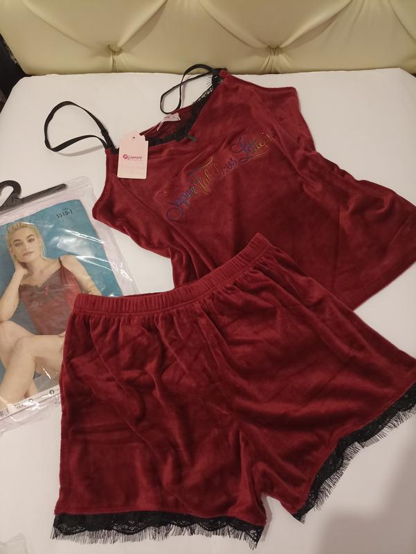 Бордовый набор с кружевом туречица размер Л L: майка: обхват груди - 94, длина - минимально 56 - максимально 68 (бретели регулируются), шорты: длина – 37, обхват талии (резинка талии-тянется) – 69..