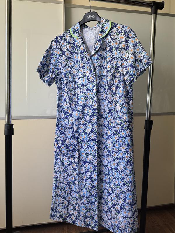 Хлопковый халат на пуговицах с карманами на короткий рукав,е пасок.Красивый ромашковый принт.В наличии 2размера наш 44р и 46р Размер 44 164/88/96вказанный производителем. Замеры: длина 108см,ПОГ-47см,плечи39см ПОБ 48/51см Рукав 19см,Пройма 26см Размер:164/92/100 46р Замеры: длина 109см,ПОГ 49см ПОБ-52/56см Плечи 41см,рукав20см,Пройма 26см Состав:100%хлопок