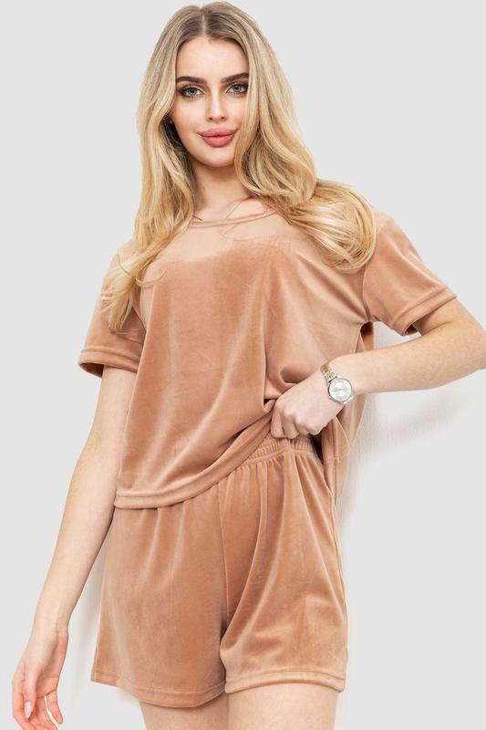 Домашний костюм велюровый, цвет бежевый, размеры 40-42, 44-46 fa_010026