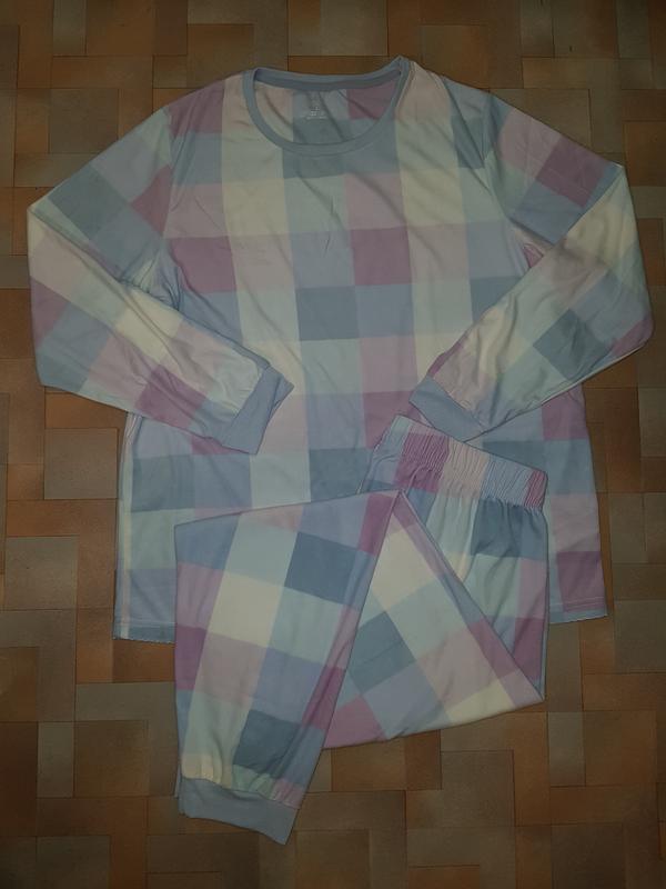 Яркий теплый комплект primark пижамка велюр l р-р красивый цвет нежная клетка