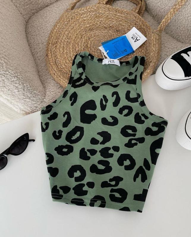 майка топ В рубчик принт Лео леопард для дома сна или прогулок классное качество
