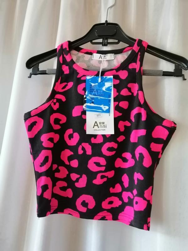 майка топ В рубчик принт Лео леопард для дома сна или прогулок классное качество