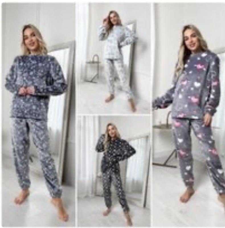 Домашній комплект піжами з малюнком, плюшова, м’яка, дуже тепла. Стан ідеальний р. M-L Заміри: кофта- довжина-66 пог-56 рукав-62. Штани-довжина-98 поб-53. Зручний та стильний вибір для відпочинку вдома.