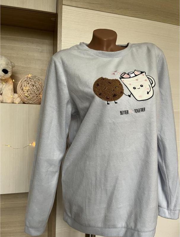 🔥Домашній улюблений реглан , ваш комфорт . Сток-ідеальний гарний новий стан. Якісний , милий і актуальний на холодну пору року Колір постель -світло небесно блакитний, в реальності ніжний і гарний . Цікавенький декор спереду на груди. Буде вам затишна і атмосферна для дому. Довжина по спинці від середини -67 см, плечі 42 см, під руками обхват 55-55.5 см, рукав від шва на плечі 60 см, від шиі 71 см, краще носити оверсайз, рекомендую!🧚♀️