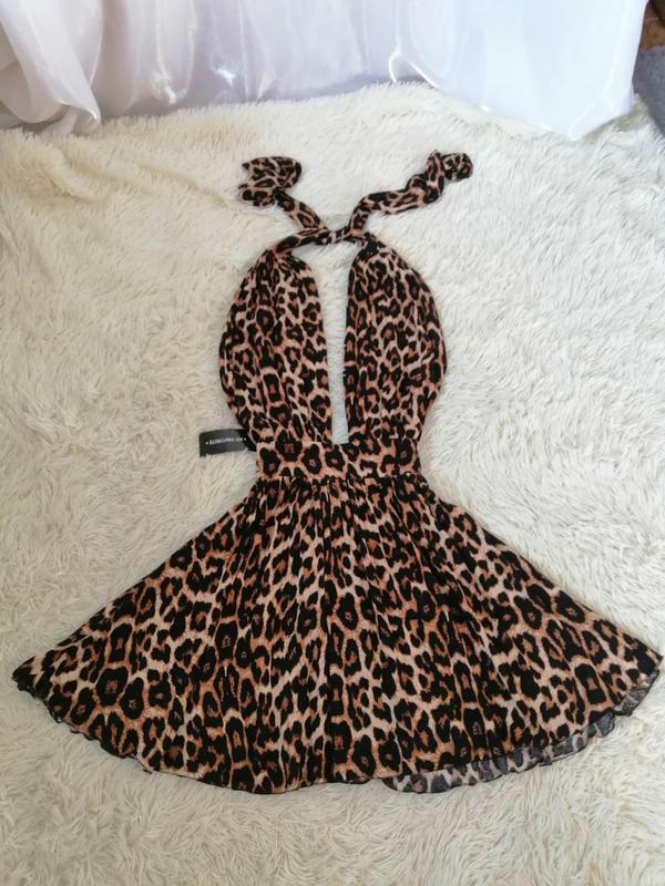 сукня натуральних бавовна віскоза з зав'язкою навколо шиї прнт леопард розміри S і M у двох відтінках сірий та шоколадний