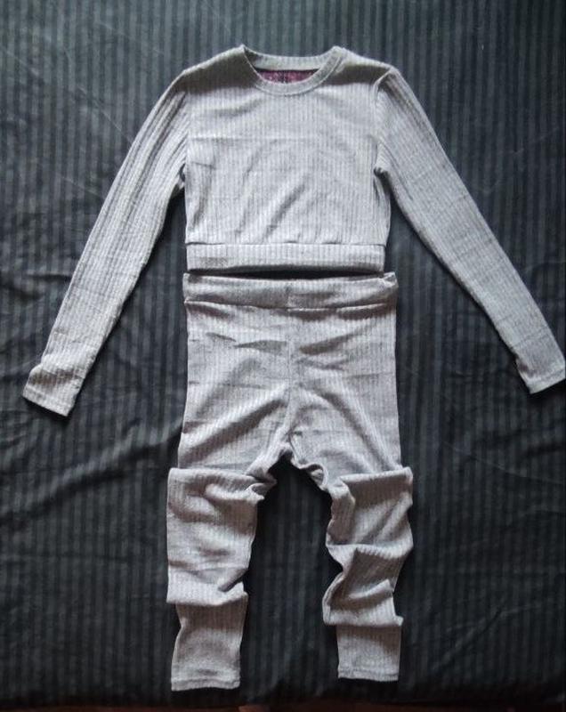 Топ короткий Полуобъем груди - 38см Длина изделия - 37см к резинке, резинка-4см Длина рукава - 60см Лосины Полуобъем талии-36см, на резинке Длина -93см, внутренняя длина 63см Цвет меланж Размер -М