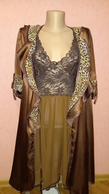 Производитель - Турция. Замеры халата: Плечи - 40см Рукав - 33см Длинна - 92см ПО груди - до 55см ПО талии - до 58см ПО бедер - до 65см ПО рукава - 17см Замеры ночнушки : Длинна - около 80см ПО талии - 35-40см (кружево тянется) ПО бедер - до 52см Можно приобрести по отдельности.
