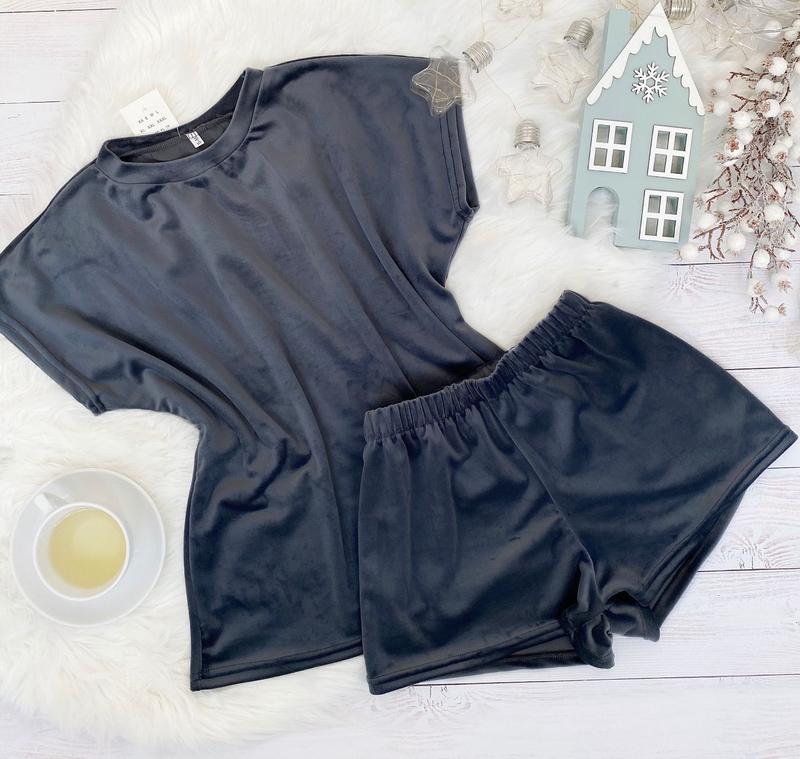Жіночий приємний до тіла комплект з плюшу. Футболка вільного крою. Короткі шорти, на високій посадці. Тканина: плюш Колір: пудра, пильна троянда, чорний, хвиля,шоколад, бордо, червоний, сірий, темно-синій, бежевий Йдуть в двох розмірах: S-M і L-XL Виміри: S-M: ОГ ~100 см; ПРО~ до 105 див. L-XL: ОГ~106см; ПРО~111см. Тканина добре тягнеться. Можливі розбіжності 1-3 див.