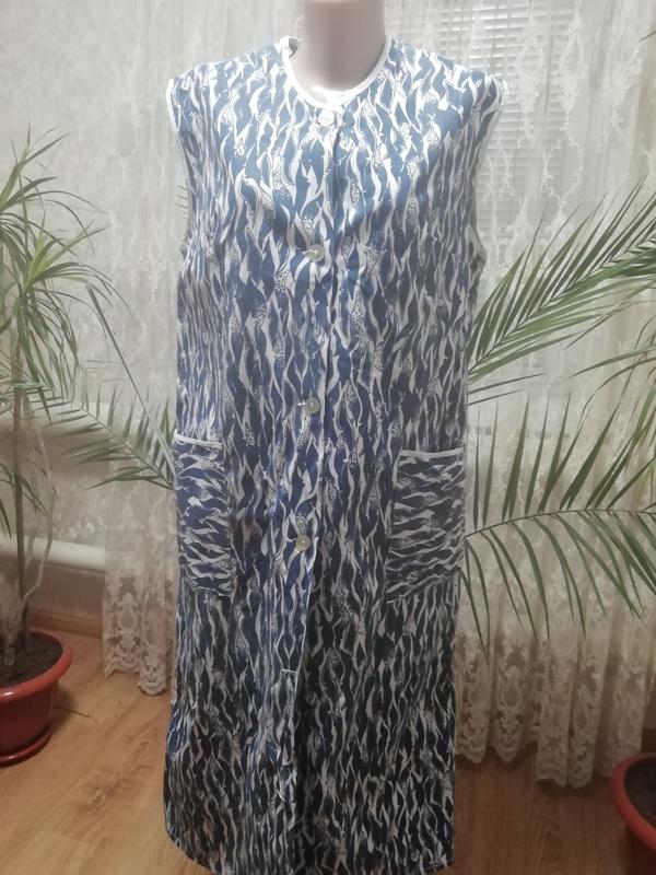 Халат, тканина льон, пог54см, поб58 см, плечи 43см,довжина по спинці 109см