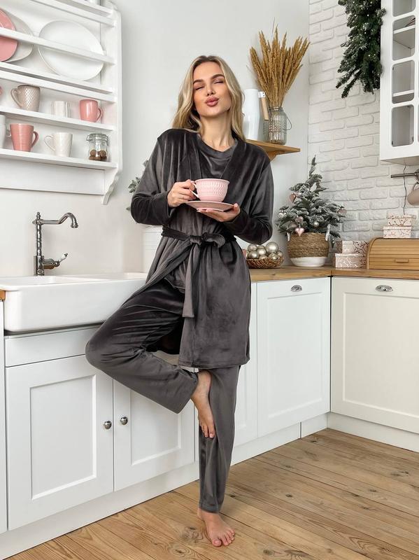 Жіночий домашній космплект трійка з халатом 4 кольори