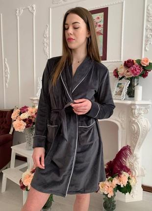 Оксамитовий халат з довгим рукавом, різні кольори в наявності. 📌Код: К90-01 📌Матеріали: оксамит плюш на бавовняній основі 📌Розміри: S, M, L Довжина: S - 95см M - 100см L - 105см