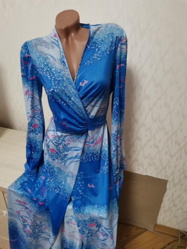 Шикарний халат, довгий Малюнок просто супер Поліестр, но тканина приємна на дотик Виробництво Італія Реально дуже крутий Довжина 139 см Довжина рукава 63 см Ширина под проймой 45 см Є нюанс, трохи розвйшовся пояс, треба зашити