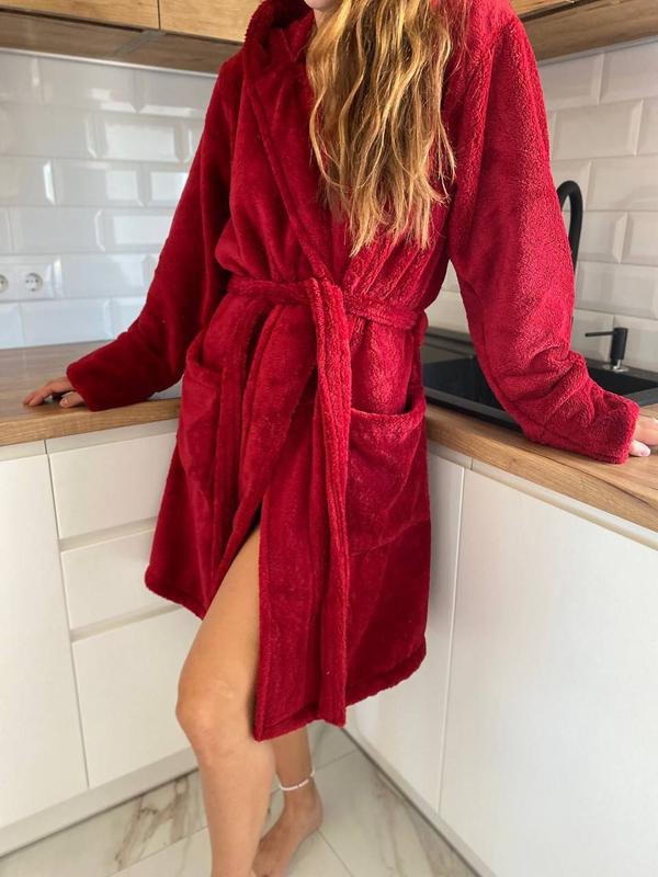 Халат велсофт теплый миди с капюшоном унисекс 6 цветов
