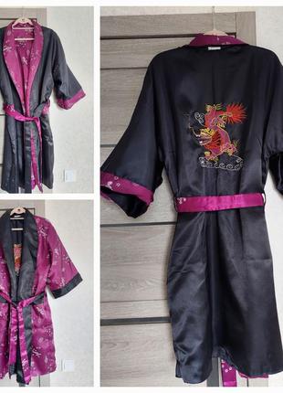 👘тайський шовк, двосторонній шовковий халат-кімоно👘, з вишитим драконом таїланд