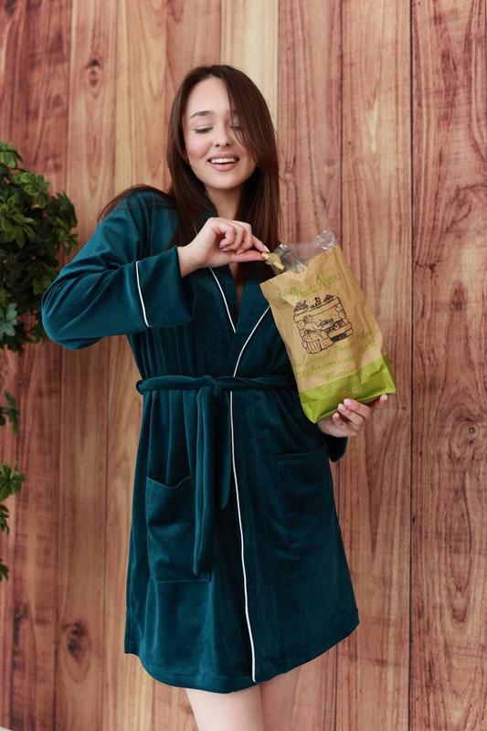 Модель: халат з кантом на запах Тканина: велюр плюш на котоновій основі Розміри: с м л хл Колір: ізумруд