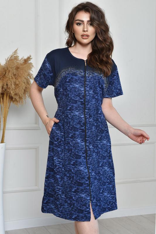 Халат женский батал синего цвета с принтом 156135l gl_55
