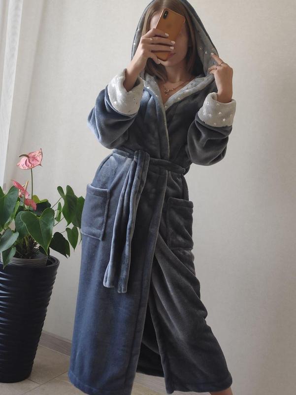 Теплый женский длинный халат на запах в универсальном размере темно серого цвета на запах с поясом с капюшоном Женский банный халат изготовлен из высококачественной ткани, которая имеет отличную воздухопроницаемость и является гипоаллергенной. Халат имеет большой и удобный крой, с облегающим поясом и двумя карманами, а также длинными рукавами. Мягкая ткань отлично впитывает влагу и приятна для кожи. Этот махровый женский халат станет незаменимым для водных процедур, таких как баня, сауна, бассейн, а также после душа или ванны. Кроме того, он прекрасно подходит как удобная домашняя одежда. Этот халат также может стать отличным подарком на такие особенные дни, как 8 марта, День Святого Валентина, день рождения, юбилей или годовщина для женщины, любимой, девушки, мамы, подруги или сестры. Он теплый, мягкий, белый и удобен с запахом и поясом, что делает его также идеальным выбором для будущих мам и кормящих женщин, и может быть взят с собой в роддом. - Размер универсал 42-46 за счёт запаха, длинные подходят до 48 - Длина около 100см и 120см Обращаем внимание, что цвет изделия может немного отличаться от оттенка, представленного на фотографиях.