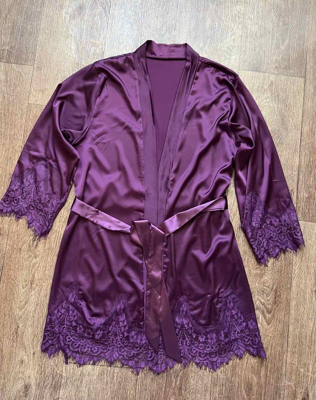 Халат с кружными вставками, размер М, длина 87 см, полуобхват груди 52 см, длина рукава 51 см, есть пояс