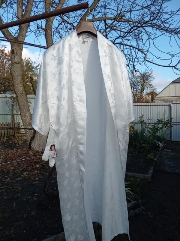 Длинный шелковый белый халат.р.М