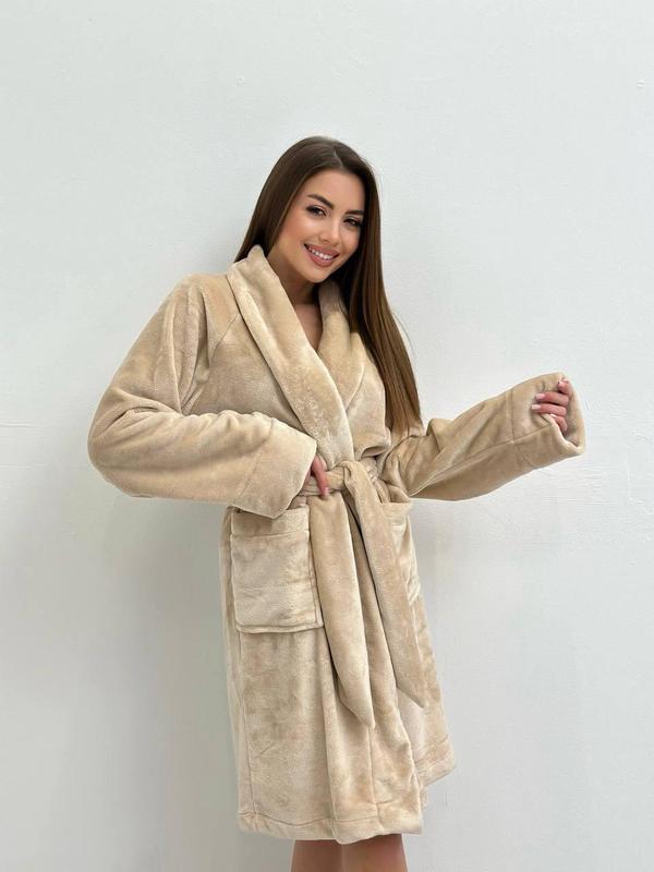 Теплый халатик 🥼 на запах. Одевается под пояс. Длина до колена. Имеет два боковые карманы. ❄️Ткань: двусторонняя махра ❄️Размеры: 42-46, 48-52 📍📍ЗАМІРИ📍📍 42-44 Груди:108 см Довжина :102 см Рукав :73 см 48-52 Груди:116 см Довжина :103 см Рукав:74 см