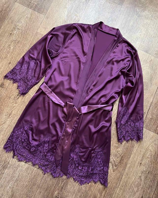 Халат с кружными вставками, размер М, длина 87 см, полуобхват груди 52 см, длина рукава 51 см, есть пояс