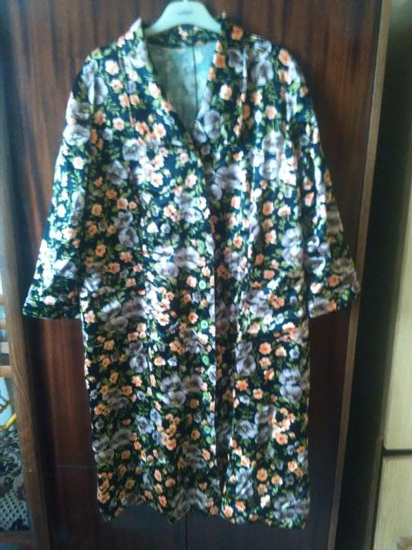 Продам женский халат из плотного материала в отличном состоянии, производство Китай. Длина халата 115 см, ширина в плечах 45 см, ширина в спине подмышками 58 см. Цена 200 гривен.