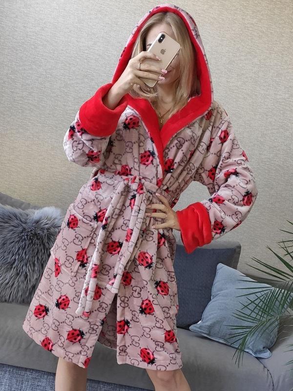 М'який затишний халатик З капюшоном Розмір універсал 42-46 за рахунок запаху, довгі підходять до 48 (модня)