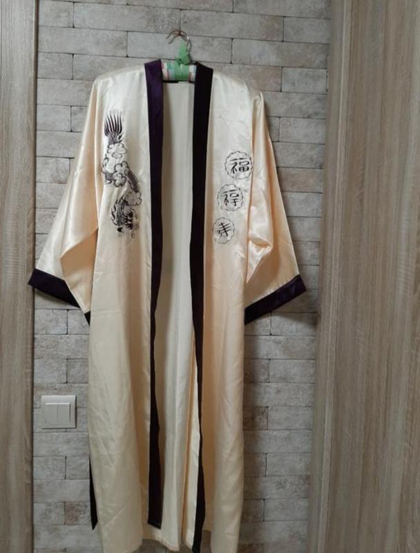 Халат из шёлка размер S,M. Отличное качество шёлка. Длина 115 см, длина рукава от ворота 62 см. Состояние новой вещи, не носился.