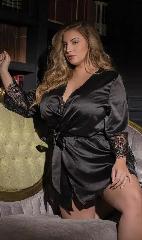 Халатик Батал Ткань атлас хорошего качества (Турция) в красивом состоянии одет 1 раз если нужны замеры, то воспользуйтесь халатик как на фото будет на 48-50 г.