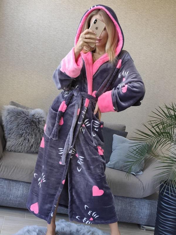 Длинный теплый халат на запах с капюшоном