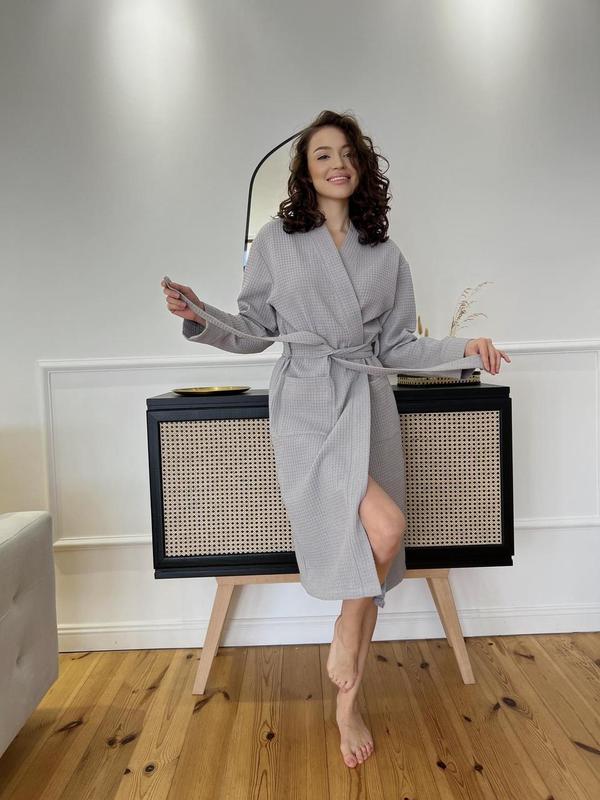 Завдяки своїй м'якості та унікальній здатності поглинати вологу вафельна тканина є однією з найпопулярніших серед бавовняних тканин. Зручний довгий халат незамінна річ у вашому гардеробі Колір: Сірий Тканина: 100% бавовна, Туреччина Щільність: 220 г/м2 довжина халата 116 см розміри: S; M; L; XL (тканина після прання дає усадку до 5%) Рекомендації щодо догляду: 1. Прати у холодній воді (при температурі не вище 40°С), віджимання тільки на малих обертах 400. Не використовувати відбілювачі. 2. Природне сушіння. Рекомендується трохи розтягнути Виріб під час сушіння. 3. Прасувати при високих температурах до 200°С (режим бавовна) з паром. Після прання вафельні клітини збираються, але після висихання та прасування вони розходяться.