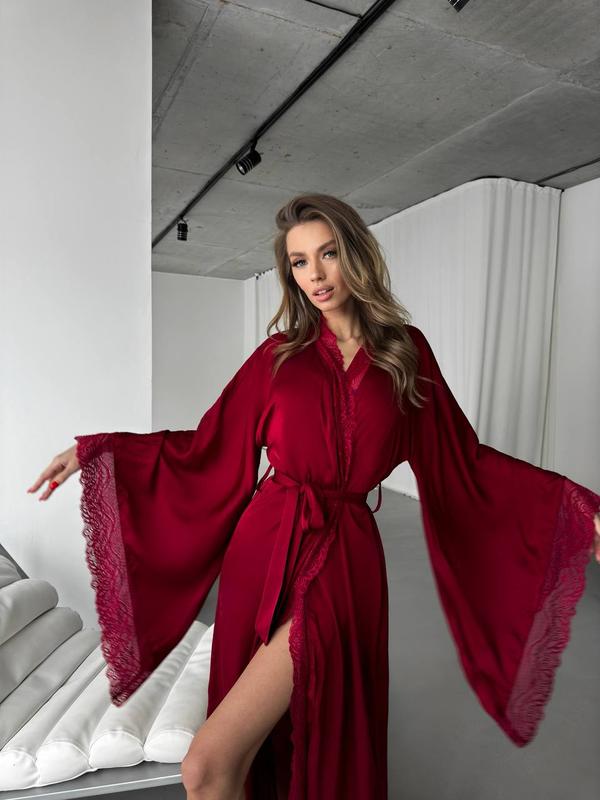 DO2920/2 Эффектный халат из шелка Армани с кружевом - Размеры: S, M Размер по сетке: S: грудь 86-96, бедра 86-97 см М: грудь 97-105, бедра 97-105 см