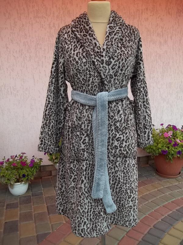 Б/У,в хорошем состоянии ( 48 / 50 р ) NEXT Флисовый халат женский леопардовый принт Длина - 110 см Плечи - 45 см Длина рукава от плеча - 61 см Грудь - 120 см Талия - 130 см Бедра - 140 см
